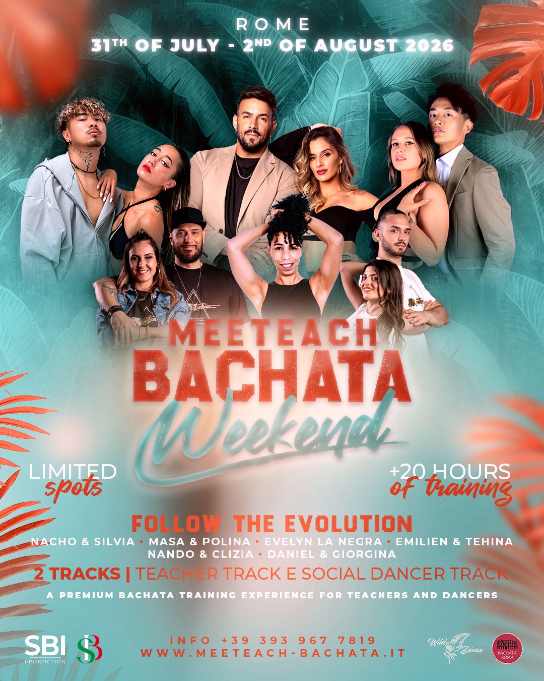 Il primo evento dedicato all'evoluzione della Bachata e allo studio dei nuovi stili, con 2 track esclusive per maestri e social dancers, dove potrai modernizzare la tua tecnica e/o la tua didattica studiando con i protagonisti di questo cambiamento.